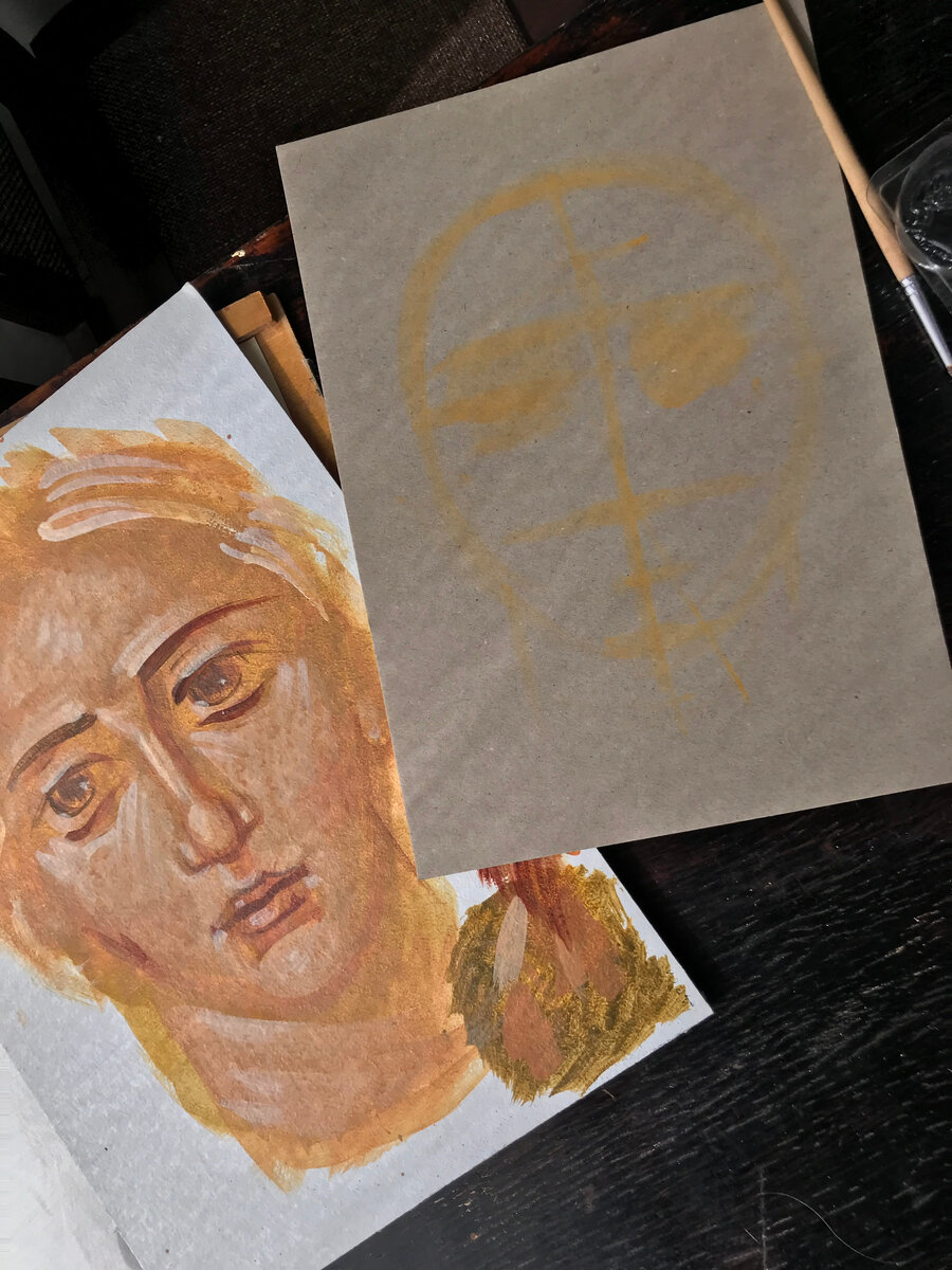 традиционную, темперную, с демонстрацией технологии и приёмов. Понятное дело, что занятие было ознакомительным; что научить человека за пару часов устойчивому навыку невозможно. Задача наша была - показать красивое, сообщить критически важные знания о технике и технологии и вдохновить. Да, вот так вот высокопарно и серьёзно ) Как и обычно: начало, конструктивный рисунок, базовые сведения о классике и золоте традиции занимают бОльшую часть времени. Рисуем гармоничное лицо золотых пропорций, с классически выставленным светом. Подростки рисуют импульсивно; интересно наблюдать за ними. Понятно, что процесс превалирует над результатом; зато они отлично слушают, задают интересные умные вопросы и вообще молодцы небезнадёжные. Впс в процессе: И что вышло у меня - быстро, полупрозрачно, вполне педагогически. Дети изобразили то, что смогли и хотели; из собственно рисунку ещё учить и учить. Их версии можно посмотреть по ссылке в комментарии.