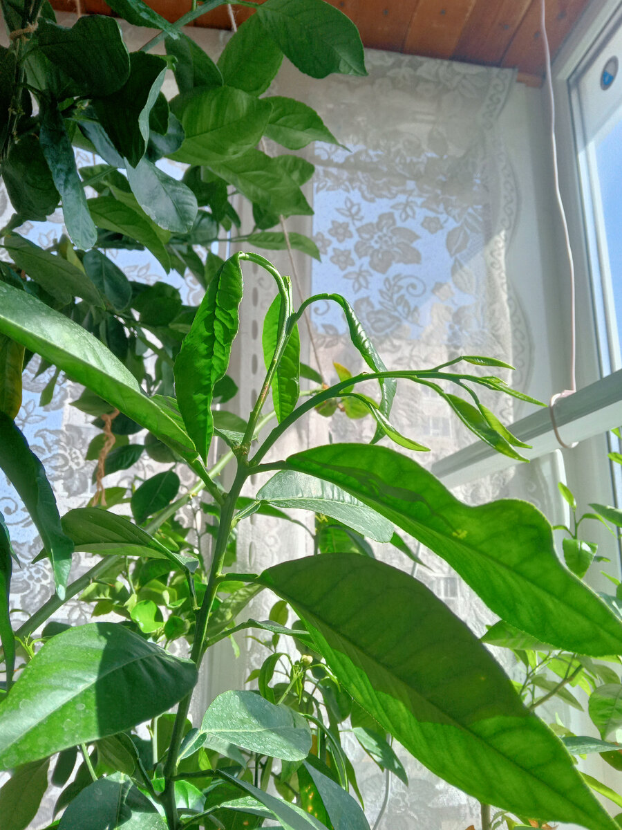 Весна вступила в свои права. Цитрусята на балконе протянули к солнышку нежные салатовые лапки. Но вот беда! - Лапки поникли... Что делать? Дело в том, что прочность растения достигается за счёт целлюлозных оболочек клеток, которые образуют каркас растения и формируют мощные проводниковые пути. Молодой прирост ещё не набрал прочности, клетки не нарастили целлюлозной оболочки, а потеря воды приводит к резкому уменьшению тургора клетки и пониманию молодого прироста. Прежде всего смотрим влажность грунта: если растение сухое, поливаем. Если грунт сырой, а молодой прирост поник , то дополнительный полив не решит проблему, но может привести к заливу корневой. Лучше просто притенить молодые веточки и они встанут. Спустя пару дней они уже не будут понимать на солнце и притенение можно снять. Опрыскивать в данной ситуации можно, но лучше предварительно отнести растение в ванную комнату и опрыскав, подождать его высыхания. Капли воды на солнце могут привести к ожогам, ведь они работают как у