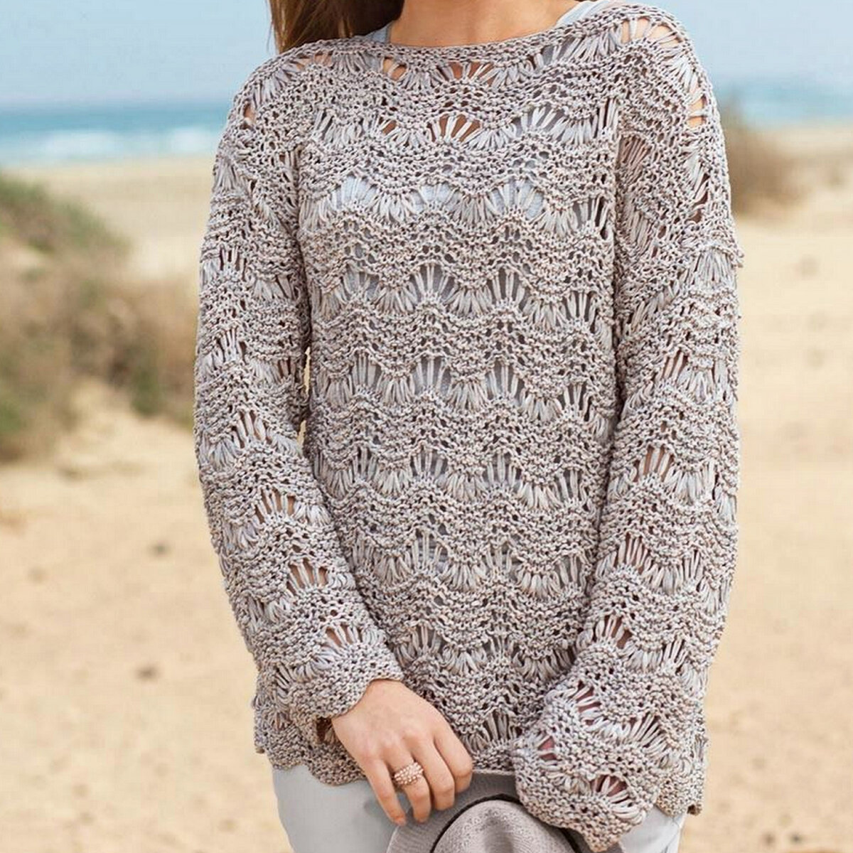 Апрельская погода весьма переменчива и как бы ни хотелось уже носить лёгкие футболочки и джемперы с коротким рукавом — приходится считаться с температурой за окном! Для коротких вариантов ещё прохладно. Особенно, когда солнце прячется за тучками.... бррр. Поэтому в очередной раз собрала для вас модели с длинным рукавом. 7 красивых ажурных и фактурных джемперов, свитеров и пуловеров, которые пригодятся в демисезон. Под каждой моделью ссылка на описание и схемы. Вдохновляйтесь и вяжите! Подборка всех статей со свитерами, джемперами и пуловерами спицами и крючком: Модель № 1 ♥ Эффектный серебристо-серый пуловер с крупным ажурным узором «волны» из вытянутых петель. Особый шик достигается за счёт мягкой ленточной пряжи. Модель оверсайз, сильно спущенная линия плеча, широкие рукава-труба и вырез лодочкой. Для вязания этой модели нам потребуется 550 (600) г серебристо-серой ленточной пряжи: 100% хлопок; 105 м/50 г. Спицы № 5. Размеры: 38/40 (44/46) ОПИСАНИЕ, ВЫКРОЙКИ И СХЕМЫ ЗДЕСЬ: Модель №