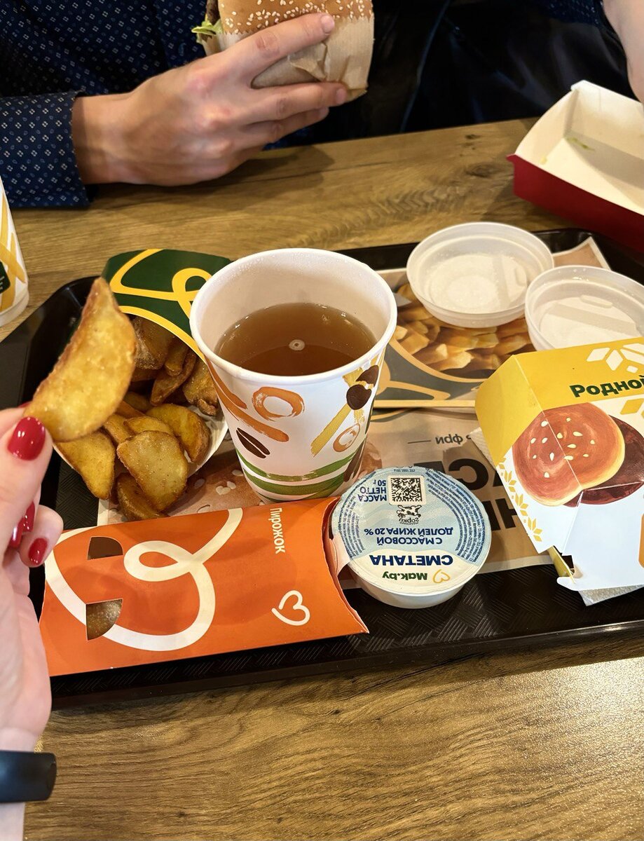 Сойдя с поезда, мы первым делом оправились местный Макдоналдс - Mak.by. На мой взгляд, такое название намного привлекательнее нашего "Вкусно - и точка", хотя человек ко всему привыкает. Из нестандартного удалось попробовать сезонное меню - бургер с ржаными булками и квашеной капустой. Я поставила этому бургеру высокую оценку, но на следующий день он уже исчез из меню. Также в местном Маке продаётся пирожок с картошкой и грибами, который меня не впечатлил. И, конечно, попробовали жареную деревенскую картошку с настоящей сметаной (тоже фирменная фишка). Я всю поездку пыталась сравнить по памяти вкус московской картошки и белорусской, но так и не смогла понять своё вкусовое впечатление. Чтобы быть наиболее объективной, я попробовала картошку во всех видах термической обработки: тушёную, варёную, жареную. В итоге, сложилось ощущение, что белорусская картошка более сладкая, более мягкая... А, может, это самовнушение под воздействием мнения других людей.