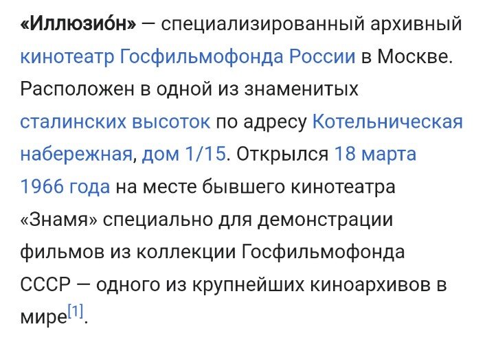 В пятницу, помимо регистрации на экскурсию в Музей русской иконы , я зарегистрировалась на бесплатный ретро показ в кинотеатр Иллюзион. О кинотеатре я узнала опять же от @umeconomia - спасибо, Оля, ещё раз огромное 🤗. Вышли пораньше, чтобы насладиться видами. В метром мальчик получил папин кепарик и получилось забавно: К 11 часам мы были на месте: Вот в этой высотке находится кинотеатр Иллюзион. Очень амсосферное место. Представляете - здесь не продают попкорн 🍿 💪🏻. Здесь, как в театре (а кино, помнится, когда-то тоже было видом искусства 🤷🏻♀️), есть буфет с пирожными и кофе и столики, за которыми можно спокойно посидеть и пообщаться: До начала сеанса звучит живая музыка: Непривычно большой зал - наверное рядов 20, если не больше: Нам достались места в 4 ряду: Смотрели великолепный фильм: Оказывается, я никогда не смотрела этот фильм целиком - отрывки помню, но чтобы вот так - целиком, без рекламы, на большом экране - это великолепно! Я получила огромное удовольствие. С