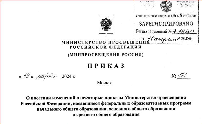 Кстати вот скриншот главной страницы приказа от 19 марта 2024 года -