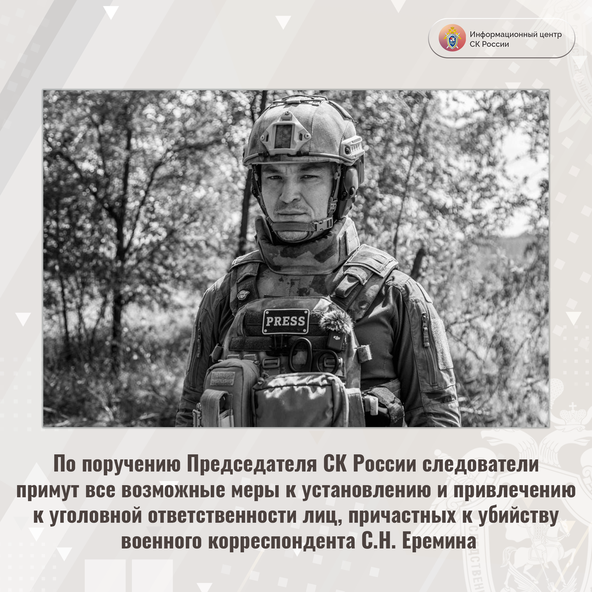 По поручению Председателя Следственного комитета Российской Федерации следователи примут все возможные меры к установлению и привлечению к уголовной ответственности лиц, причастных к убийству журналиста.
