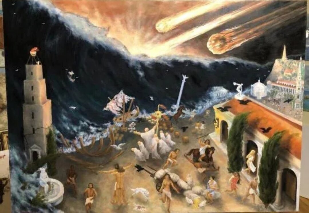 Повелитель морской империи вышел на балкон своего величественного дворца и посмотрел на свою столицу, Посейдонис. Город "ста золотых ворот" был окружён рвами, соединёнными вместе. Волны земли были вырыты достаточно глубоко, чтобы пропускать корабли, которые местами проскальзывали под настоящими туннелями.
