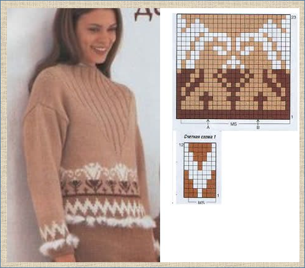 Жаккардовый бордюр по краю вязанного джемпера - модели и схемы - копим схемы - выпуск № 71
