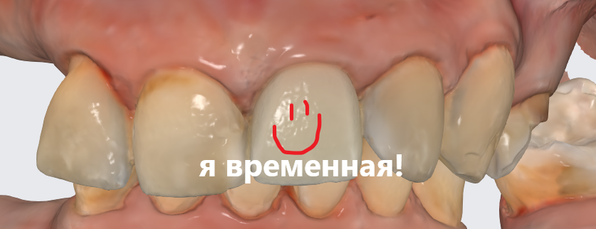 Продолжаем мучить московских пациентов. Наконец-то, свершилось - пришло время разворошить верхнюю челюсть той бесстрашной женщины, что до этого получала в область переднего зуба кость с бугра. Всё успешно прижилось, даже имплантат успели установить в феврале, прикрутив к нему временную лабораторную коронку. Вот статья: Кто-то ждёт, когда он отвалится, но бедолага держится за эту жизнь мощно. Сегодня займёмся боковыми, ура! Только знаете что? Имплантаты вкрутим, ок, но до зубов ещё жить и жить, месяцев 6 точно. Нагружать не будем "болты" одномоментно. Можете продолжать ждать осложнений, а мы настроены на позитив. Двухсторонний синус-лифтинг и имплантация с хирургическими шаблонами на верхней челюсти Напомню, как выглядит полость рта сейчас. Делаем сканирование челюстей: Задача: Получилось почти всё задуманное. Только имплантат один пришлось выкрутить и зашить слизистую. Не прокатило... Но об этом чуть позже, не буду нарушать хронологию. Так как прикус "потерян", требуется изготовить ша