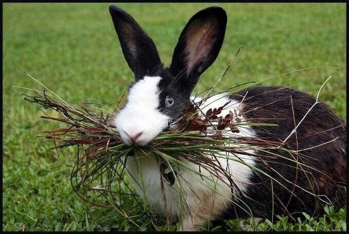 Некоторые владельцы сталкиваются с ситуацией, когда крольчиха начинает бегать с пучками сена в зубках. Как правило, это сопровождается крайне нервным и агрессивным поведением зайки, а также выдиранием собственной шерсти клоками и метками территории. Это ложная беременность, если, конечно, к крольчихе не забегал симпатичный кролик, но это уже совсем другая история. Из выдираемой шерсти и сена крольчиха делает гнездо. Если оно найдено (скорее всего в домике, но может быть и под диваном), то его нельзя трогать и тем более убирать. Во-первых, пушистая будет его отчаянно и очень агрессивно защищать, во-вторых, играющие гормоны приведут к еще большей нервности животного, а кроме того, она снова начнет строить гнездо, выдирая из себя все новую шерсть. Некоторые крольчихи настолько усердствуют в этом процессе, что на животике появляются кровоточащие ранки. Если вы их заметите, то нужно их обрабатывать хлоргексидином ежедневно до полного заживания. Если кролька носит шерсть во рту, то нужно п