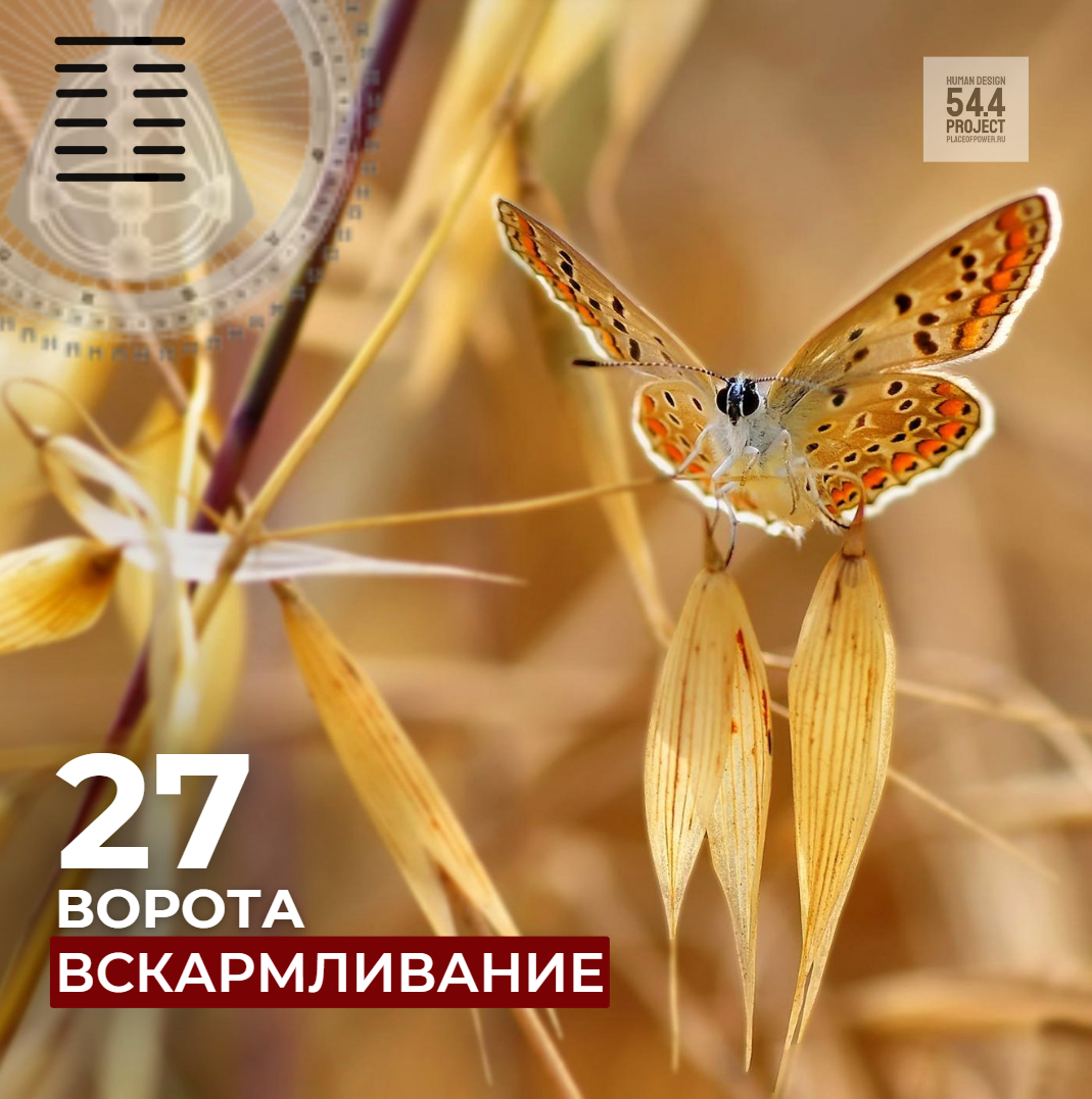 Продолжая рассматривать сексуальные роли сакрального центра, то есть, наши роли и стратегии образования союзов, мы подошли к 27-й Гексаграмме, Вскармливанию, к сексуальной роли, которую мы играем в заботе. Реальность такова: с одной стороны — репродуктивная способность, которая позволяет производить детей и приводить их в мир. С другой стороны канал Сохранения — о том, чтобы вскармливать, питать и насыщать детей, что позволит им стать здоровыми членами своего сообщества, могущими сделать вклад в его развитие.