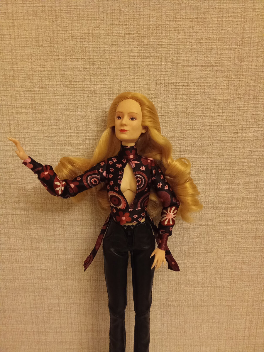Всем огромный привет 🤗. Очень рада Вас всех видеть 😊. Как Вы уже знаете меня зовут Арина и мне нравится шить одежду для кукол. Я должна была уже несколько дней назад дошить и выложить эту блузку, но было много дел и мало времени 😉, надеюсь Вы на меня не обиделись. Выкройку я делала по кукле Алиса, но хотела взять моделью Карину и когда я ее дошила выяснилось, что у Карины грудь больше. Блузку примерили обе девушеки, а Вы напишите пожалуйста на какой лучше смотрится. Для этой блузки, я уже начала шить штаны. Приступим 🤗 Обматываем куклу пищевой плёнкой, затем обклеиваем малярный скотчем и рисуем модель блузки. Вырезаем переносим на бумагу. И наша выкройка готова Выкраиваем блузку Подворачиваем и подшиваем передние центральные детали Подворачиваем и подшиваем задние центральные детали Сшиваем по плечевому шву. Для удобства я защепила низ и верх между собой у передней центральной детали Складываем детали воротника между собой и сшиваем. Верх и бока, низ не зашиваем Выворачиваем