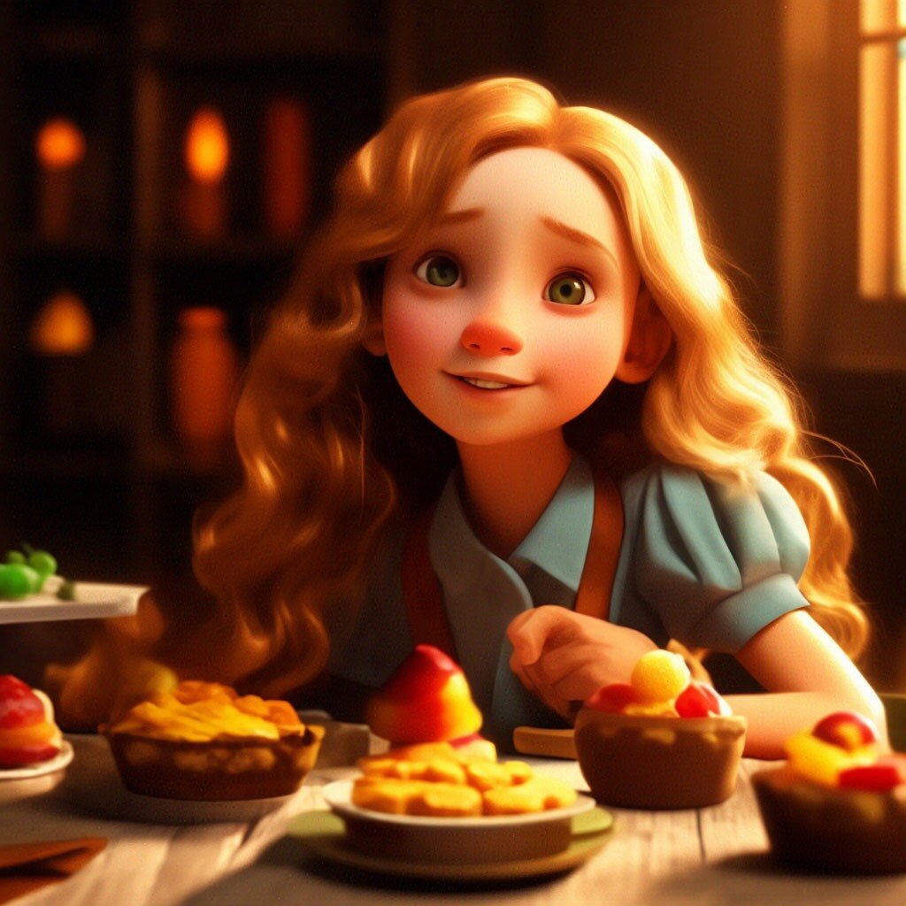 Однажды в далекой-далекой стране, в маленьком городке, жила девочка по имени Алиса. У нее были золотистые волосы и зелёные глаза, как листья на деревьях. Алиса любила сладкое, и каждый день она ела торты, печенье и конфеты. Но Алиса забывала о том, что нужно ухаживать за своими зубами, и они начали страдать.