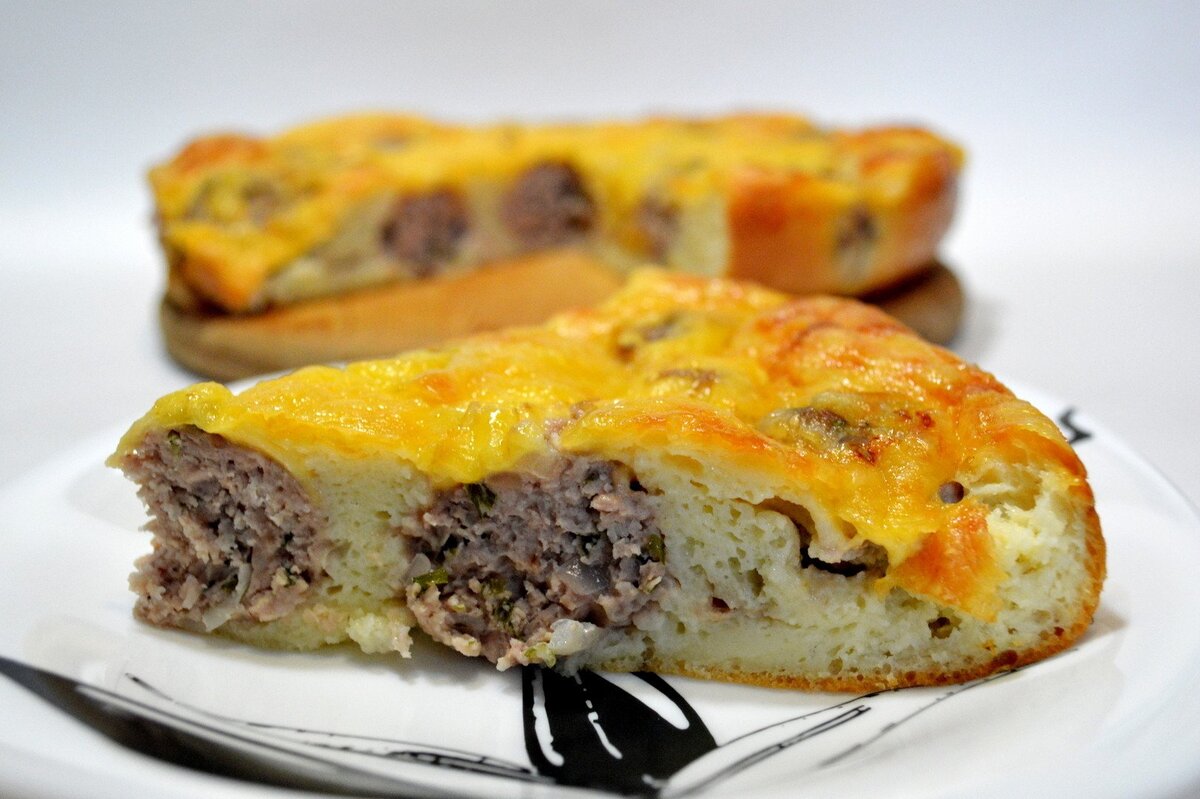 Выложите в подготовленную форму фрикадельки, залейте их тестом, после чего поставьте в разогретую до 180 градусов духовку на 40 минут. Перед подачей дайте пирогу немного остыть. Приятного аппетита!