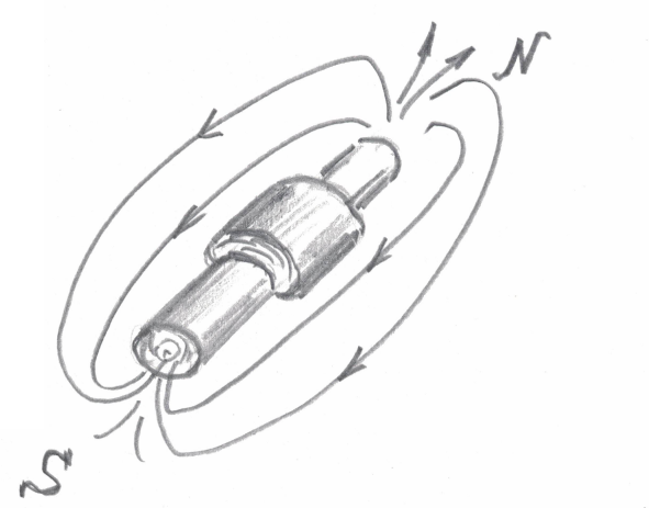 ОПЫТ № 2. ИЗУЧАЕМ ВЗАИМОДЕЙСТВИЕ ДВУХ МАГНИТНЫХ ПОЛЕЙ Посмотрим, как будут взаимодействовать два поля: поле электромагнита и поле стрелки компаса. Вообще-то, стрелка компаса всегда показывает на северный полюс Земли (если, конечно рядом с ней нет более сильных магнитов или массивов железа). Земля – магнит, который создает вокруг планеты поле. Его силовые линии выходят на северном магнитном полюсе и входят на южном. Но и стрелка компаса – это маленький магнитик, она может легко вращаться в корпусе компаса на оси. При взаимодействии с полем Земли стрелка занимает более «удобное» для нее положение – вдоль силовых линий более мощного земного магнита. А эти линии идут с Севера на Юг вдоль меридианов планеты. Кстати, может тебе будет интересно, но Северный магнитный полюс Земли расположен недалеко от Южного географического полюса в Антарктиде (в 100 км, точно они не совпадают). Ну а Южный магнитный - наоборот на Северном географическом полюсе Земли в Арктике. Экспериментируем. Раз