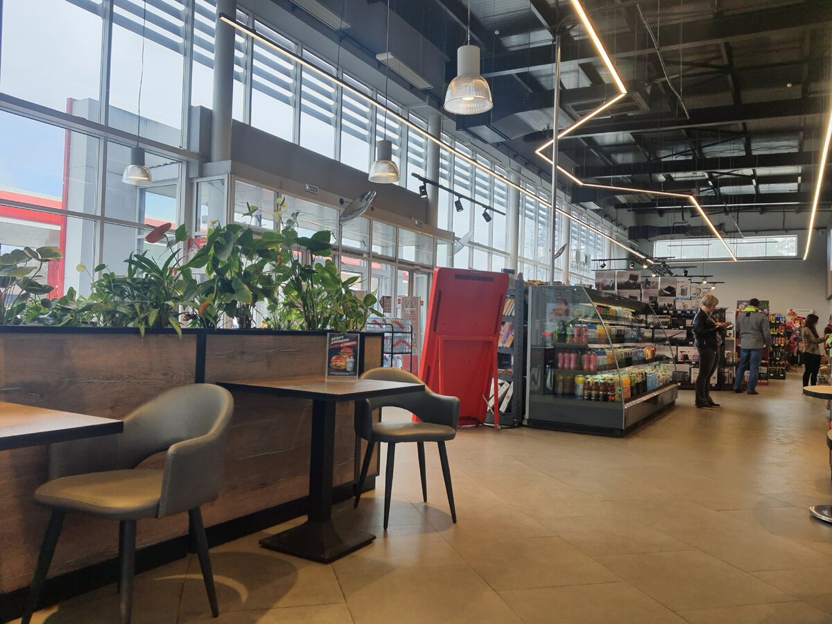 Через час, даже не позавтракавши, отправились на дачу. А по дороге заехали в "Магбургер" на заправке и вкусно поели каши и сырников.