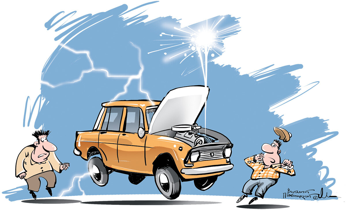 Перегоняли «Москвич-412» на дачу, а у нас тогда клинил ручной тормоз. В общем, едем, чувствуем — не тянет. Встали, вышли из машины, а тормозные диски чуть ли не светятся. Ладно, думаем, фигня, сейчас остынут. Решили и мотор охладить. Открываем капот, откручиваем пробку радиатора… и синхронно все падаем на землю — из горловины радиатора бьет нехилый такой, метров на пять, фонтан кипятка. Весело было! И. Тупицын, Катайск Еду вчера по МКАДу. Как обычно, толкаемся. Справа от меня ползет фура ярославская, и вперед фуры пытается пролезть «Лексус». Пролез — и перед фурой пару раз резко на тормоз нажал, ну, с понтом: я крутой, на «Лексусе», а ты лох. Водитель на фуре открыл окно и полторашку пустую ему на крышу кинул. За такие шутки водила с «Лексуса» остановился и пошел на разборку. Остановилась и фура. Открывается дверь и вылезает из фуры водила. Мать моя! У него ноги на земле уже, а он все вылезает и вылезает. Короче, там такой жлоб, и в руке монтировка. Водила «Лексуса» бегом от него, и ми