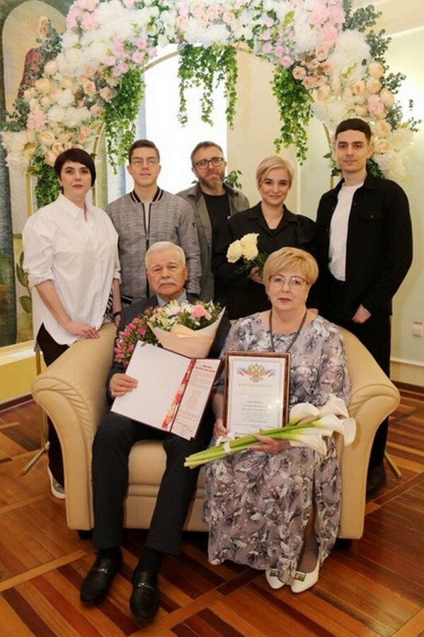 В управлении загс администрации Центрального округа Курска 19 апреля чествовали юбиляров-супругов Соболевых. Геннадий Иванович и Людмила Александровна, вступившие в брак в этот день в бюро загс Ленинского района Курска в 1974 году, праздновали золотую свадьбу — 50-летие совместной жизни. Как отметили в загс Курской области, у супругов Соболевых дружная семья, две прекрасные дочери и двое внуков. Их жизненный опыт и трудовой путь отмечен множеством наград и достоин восхищения. Как и 50 лет назад, в день золотого юбилея пара обменялась обручальными кольцами и исполнила супружеский танец. Сергей Яшин, фото загс Курской области Постоянный адрес новости на сайте «Друг для друга» ~ https://dddkursk.ru/lenta/2024/04/21/107880/. Новости Курска за ~ 21 апреля ~ апрель 2024 года.