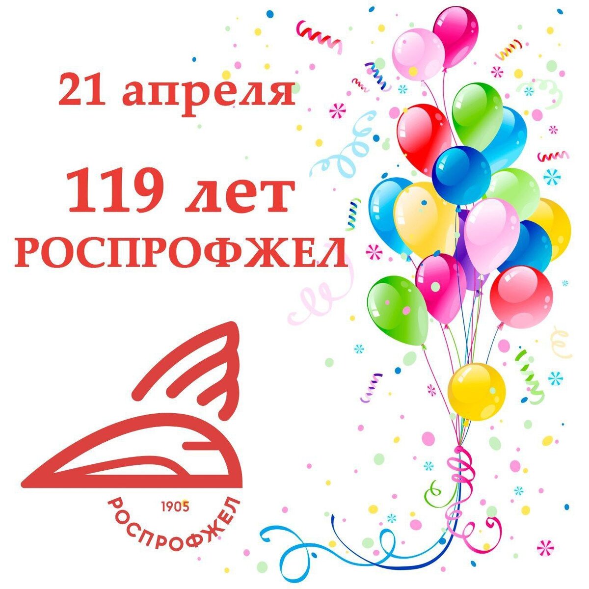 21 апреля 2024 года одной из самых крупных и влиятельных в России общественных организаций - Российскому профессиональному союзу железнодорожников и транспортных строителей исполнилось 119 лет!