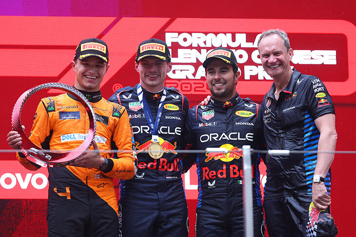 «Макларен» выдал абсолютно максимальный уик-энд: поул для спринта и подиум на неподходящей трассе с постоянным сильным ветром. Команда заранее предупреждала, что ей ничего не светит и даже от «Феррари» могут отстать на полкруга, но мастерская работа в квалификациях и со стратегией позволила Норрису выжить. Только помарка на первом круге в спринте стоила ему двух вторых мест за уик-энд. Заслуженный титул «гонщика дня», это величие – сейчас он перехватывает знамя №2 у Сайнса в пелотоне.
