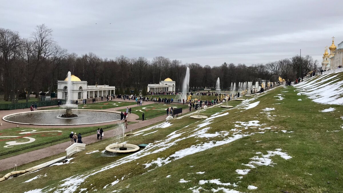 Великолепие фонтанов Нижнего парка в Петергофе притягивает всех любителей красоты, несмотря на достаточно высокую цену билета. Но есть в конце апреля одна неделя (в 2024 году она длится до 26.04), когда начинается тестирование работы фонтанов, при этом вход в парк ещё бесплатный. Конечно, не всегда может повезти с погодой 💨💦❄️. Но тогда появляется повод заглянуть во дворец (кроме понедельника), куда летом будут стоять огромные очереди.