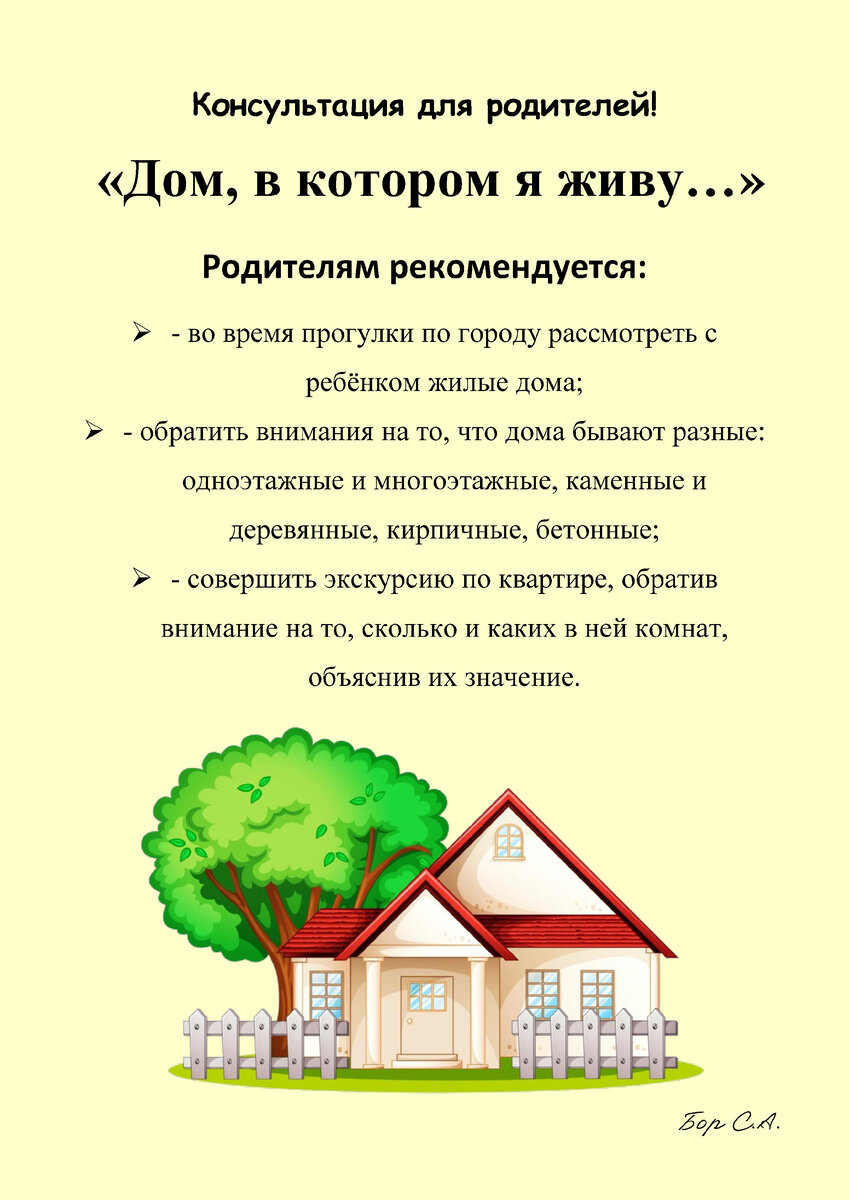 Консультация для родителей "Дом, в котором я живу..." - во время прогулки по городу рассмотреть с ребёнком жилые дома;