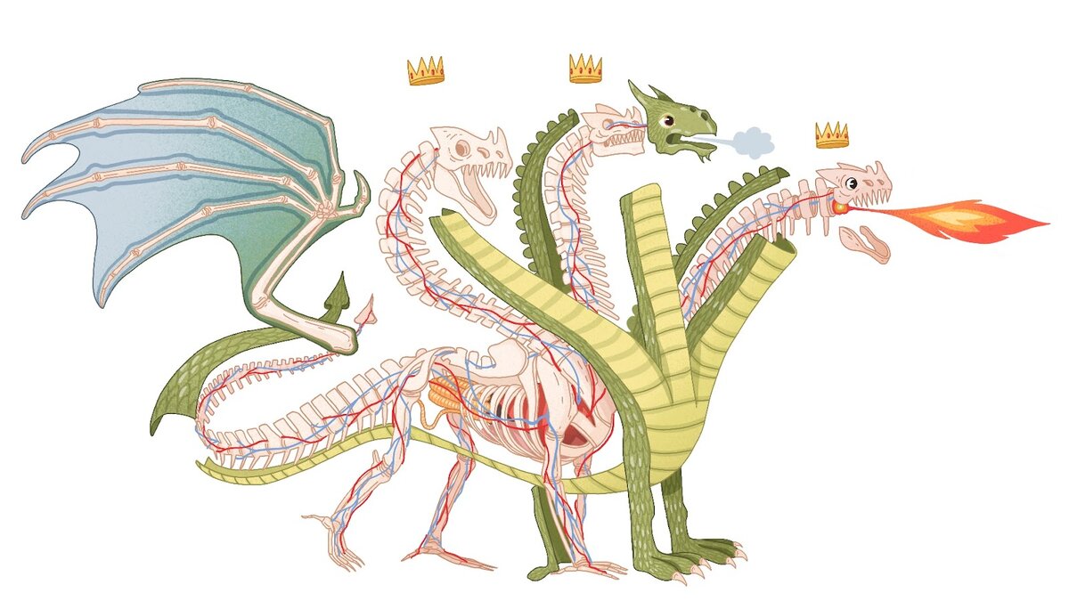 Ко Дню сказок, который отмечается 21 апреля, научные авторы Дзена показали, как выглядят персонажи русского фольклора с точки зрения анатомии. Авторы Дзена — популяризаторы науки, ученые и эксперты образовательных учреждений — проанализировали возможную анатомию персонажей русских народных сказок. Среди них — Змей Горыныч, Колобок, Баба-яга, Конек-горбунок, Жар-птица и райская птица-дева Сирин. Для создания научных образов героев авторы проанализировали описания персонажей в разных источниках и поразмышляли на тему того, как они могли бы выглядеть в реальной жизни, а не в сказках. Авторы канала «Популярная наука» Александр и Анна Дементьевы считают, что Змея Горыныча легко представить с точки зрения биологии. Его полицефалия (генетическая аномалия, из-за которой животные рождаются с двумя или более головами) — результат эволюции, заимствованный у других видов. Например, обычных змей. Огненное дыхание персонаж получил от жука-бомбардира, который защищается от крупных насекомых с помощь
