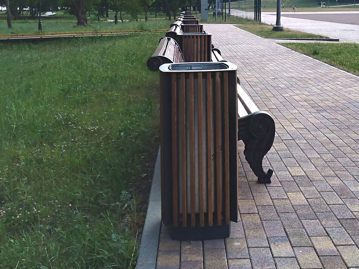Все урны нужно размещать не ближе 15 м от скамеек.