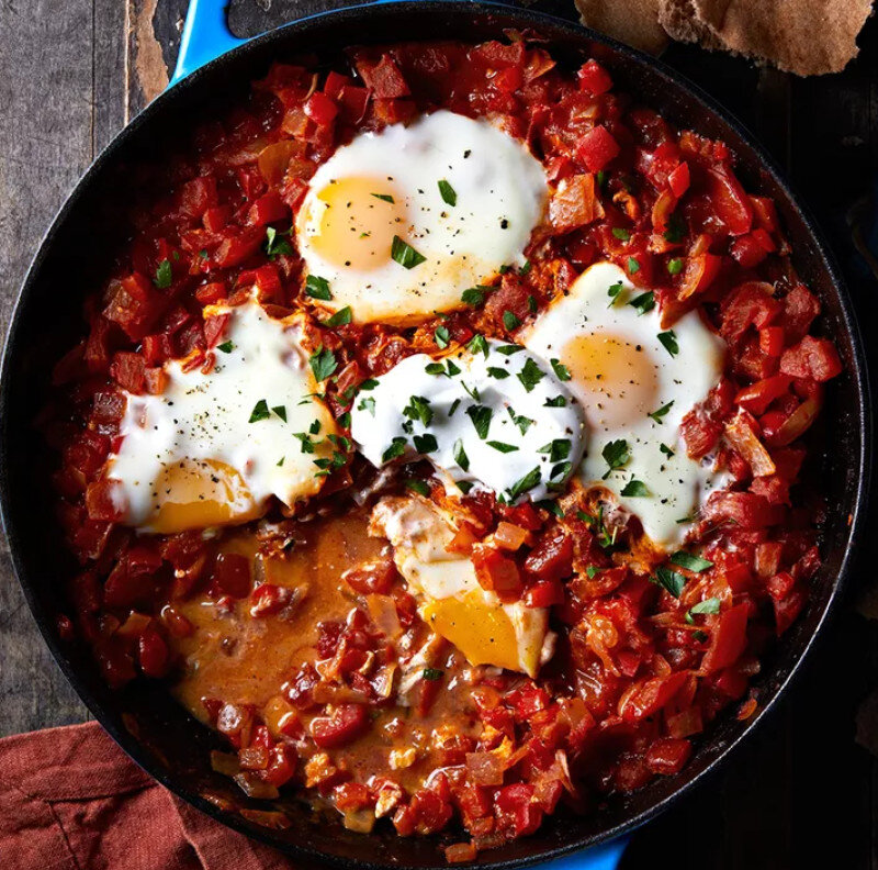 Очень полезный ЗАВТРАК из помидоров, яиц и овощей - в концепции моих статей - еда долгожителей. Шакшука — это овощное блюдо, включающее яйца, приготовленные со смесью помидоров, лука, перца и специй. Его часто подают на завтрак или обед в Северной Африке и на Ближнем Востоке.