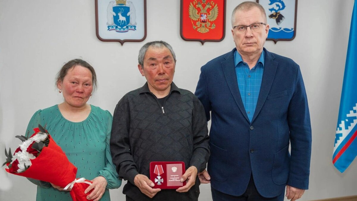 За проявленные самоотверженность, мужество и отвагу во время выполнения своего воинского долга житель Ямальского района Станислав Худи был посмертно удостоен ордена Мужества в соответствии с указом Президента России. Государственную награду родителям бойца — Юрию Нюдековичу и Нэле Леонидовне Худи — вручил глава Ямальского района Андрей Кугаевский. Станислав Худи родился в многодетной семье оленевода в селе Яр-Сале. Летом 2023 года он добровольно отправился на службу по контракту в зону СВО. Боец героически погиб в Мариуполе. «Преданность наших защитников Отечеству — пример для подрастающего поколения. Мы всегда будем помнить имена тех, кто отдал жизни за наше будущее, за мирное небо над головой. Вечная память. Гордимся», — подчеркнул Андрей Кугаевский. Напомним, военнослужащему из Пуровского района вручили государственную награду — добровольца Андрея Выставкина наградили орденом Мужества. Самые важные и оперативные новости — в нашем телеграм-канале «Ямал-Медиа».
