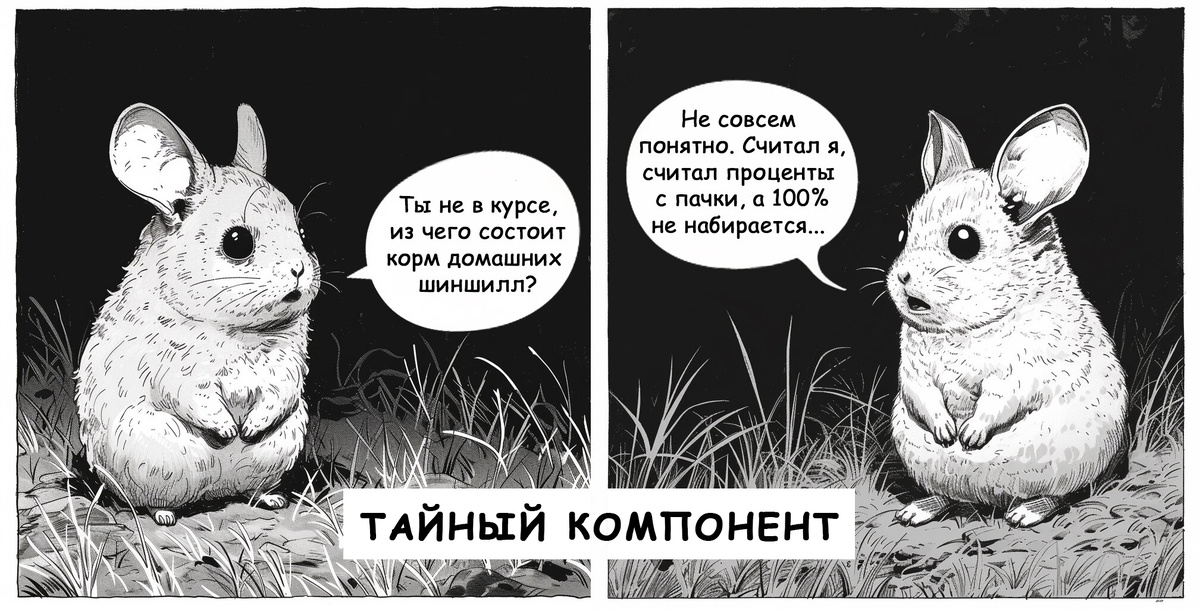 Статья будет интересна тем, кто не смог сложить 100% из процентов питательных веществ, указанных на упаковке корма для шиншилл.