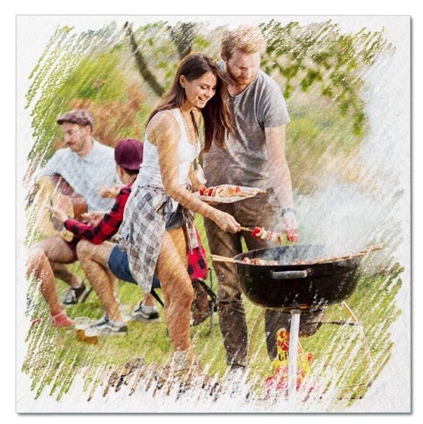 Девушки сидели в тени беседки: они уже выполнили свою часть работы – накрытый стол был идеален. Четверо молодых людей собрались около мангала и были заняты приготовлением шашлыка.