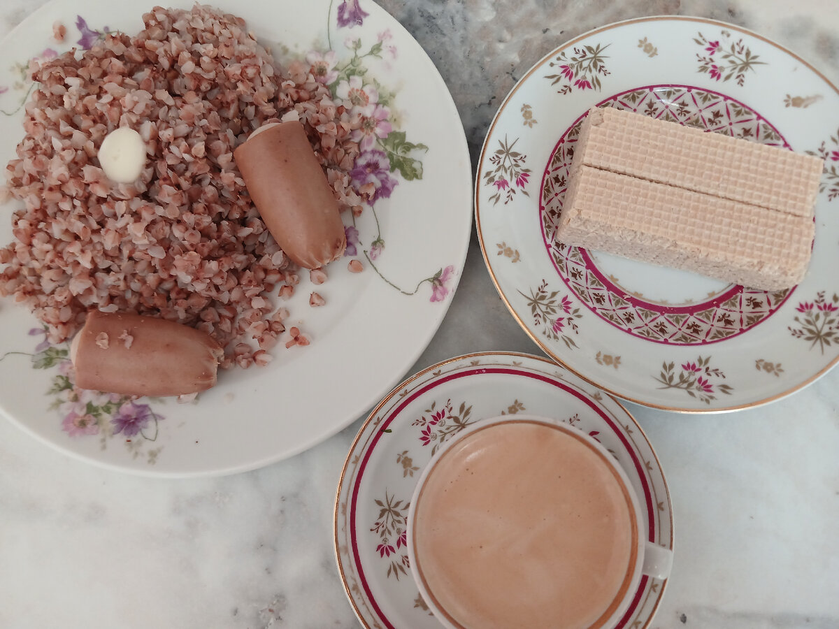 О моих запасах продуктов и бюджете на питание в апреле можно почитать ЗДЕСЬ Покупка продуктов №1 - Ашан, Перекресток, Я-Маркет, молочная ферма, Лентa, Чижик, Дикси, Светофор, Вкусвилл Покупка продуктов №2 - Лентa, Пятерочка, Дикси Покупка продуктов №3 - Вкусвилл, Яндекс-Маркет, Пятерочка, Дикси Каталог рецептов Сегодня у нас по плану прогулка на ВДНХ. Так что быстренько позавтракали утром, и укатили из дома. На завтрак гречка с сосисками, кофе и вафли с халвой С собой взяли воду и шоколадку. В планах было купить билеты на ВДНХ на дегустации и там поесть. Всё получилось! Мы с мужем посетили аж две дегустации - рыбную и мясную. В каждой по 3 блюда, десерт и чай. Про дегустации подробно отдельно расскажу. Дети дома ели суп фасолевый с фаршем, а еще колбасу и крабовые палочки. Делали заказ в Магните 😀 Вечером уже не ужинали. Ели бутерброды с колбасой и покупали мужу - пиво, а мне и старшему - медовуху. Кроме того, детям еще привезли пышек с черникой и пончиков, тоже покупали на ВДНХ.
