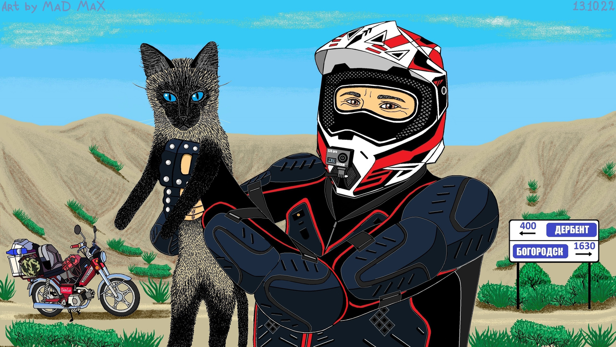Когда я был в Северной Осетии, проехал Владикавказ и двигался в сторону Фиагдона, у меня забарахлил движок. Места глухие. Парадокс, ты всегда ломаешься там, где совсем не ожидаешь, и где вообще этого делать не надо. И вот я стою и думаю, ладно, придётся чинить. А прикол, то в том, что с тобой я взял пол движка и поэтому вообще даже не парился. Я даже не думал, что я здесь останусь надолго. Просто скинул голову цилиндра, всё просмотрел, что-то поменял, поставил назад, и кое-как доехал до Верхнего Фиагдона. Там меня тоже подлатали, чтобы я смог доехать до Грозного. Там уже починился в нормальном гараже и доехал до дома. Точнее из Грозного поехал в Дагестан, потом в Калмыкию, Волгоград и только потом до города Богородска. И я до сих пор на нем езжу!