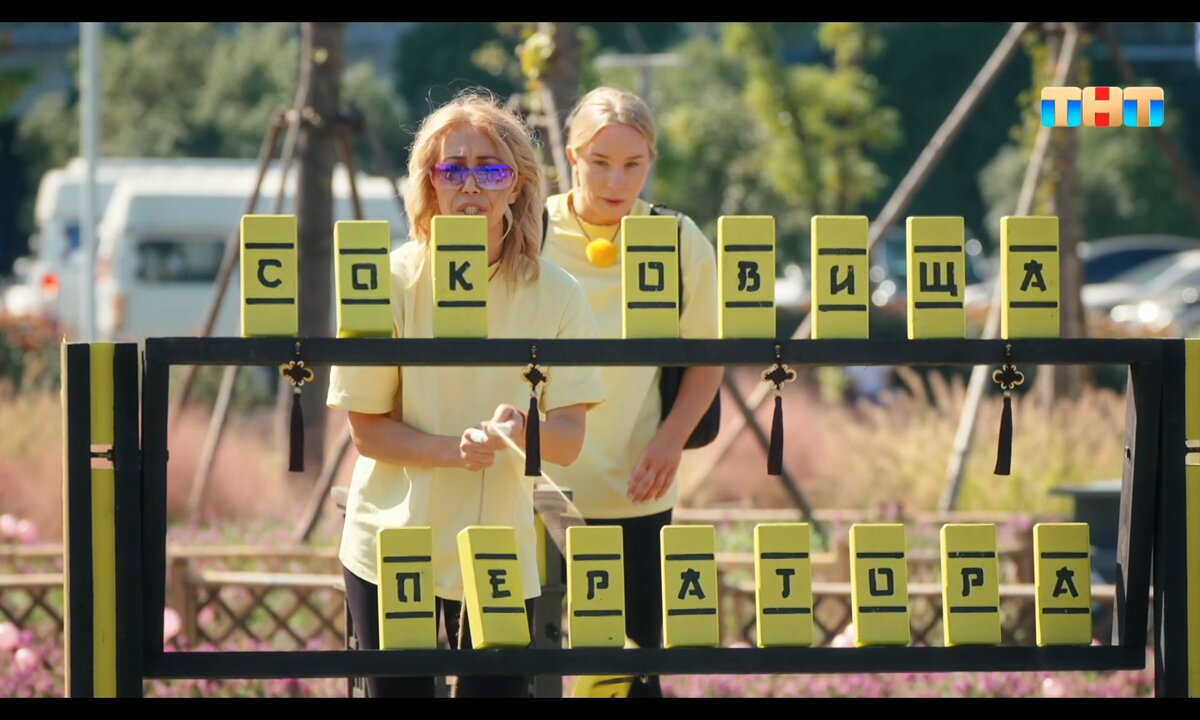 На стартовом испытании Карина разозлилась на ведущих, что они под руку сказали "осталось только дойти назад", тем самым отвлекли и у неё упали все буквы с шатающейся платформы.