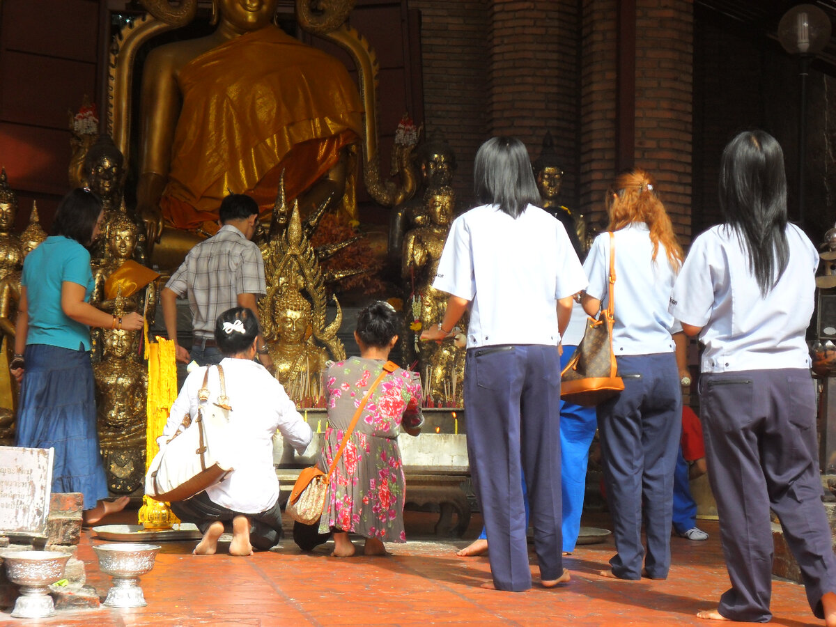 Несмотря на то, что храмы здесь частично повреждены бирманскими захватчиками и многие лежат в руинах, тем не менее они по-прежнему величественны и являются священным местом для тайцев. Здесь они облачают фигуры Будды в желтые одеяния, жгут благовония, загадывают желания, проводят медитации и просят сил и помощи.