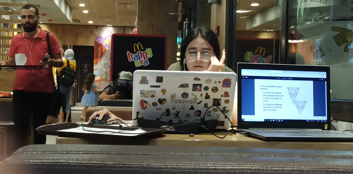 В продолжение темы с фотографиями обычных людей на улицах в Ливане. Макдаковская. Многие зажиточные студенты приходят туда посидеть в интернете. Вроде, учатся. Было время, ни одной свободной розетки в зале. Дворик церкви в городе Батрун. Внизу, где море, финикийский волнорез. Церковь православная. Народ фоткает закат. И себя в его лучах. Тот же город Батрун, но церковь другая. Маронитский собор в гавани. Ресторан в ущелье на водопадах. Был какой-то праздник, народа битком, но у меня блат и место нам нашли. Посмотрите, какие девицы за соседними столами Бар в городе Библос У отеля в Бейруте. Авария на горной дороге. Мальчишки играют в футбол на газоне около аэропорта в Бейруте. Торговый центр, покупательница. Там же, продавец "тупит" в телефон. Кафе, в котором делают вкусные соки, фруктовые салаты и кормят пироженками. Сайда. Плотник за работой Батрун, в магазинчике. Вечерняя улица. На втором этаже видны люди, которые сидят в фастфуднице. Внизу двое рассекают на мотике. Бейрут. Народ