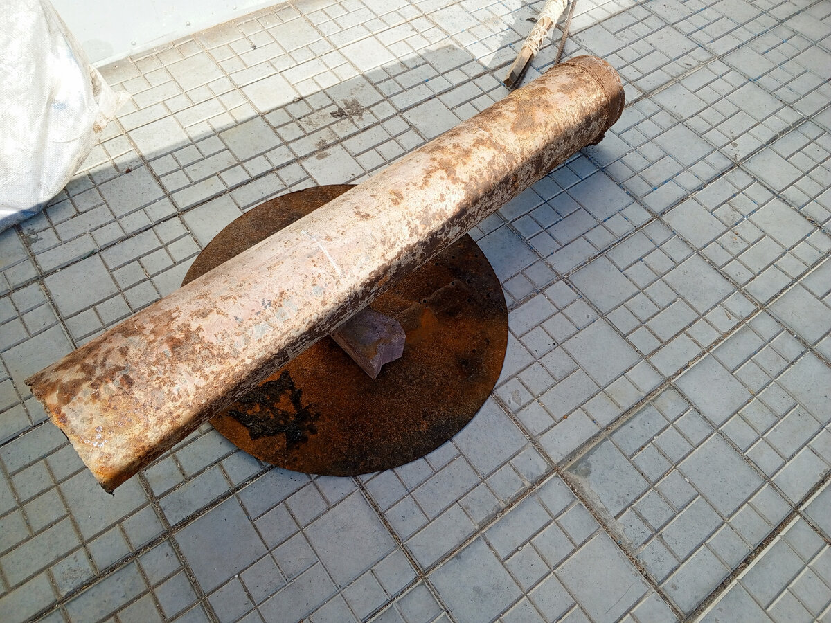 Сосед привёз целый грузовик больших кусков асфальта. Хотел немного отсыпать напротив нашего дома, чтобы разложить по ямкам. Водитель не рассчитал подъём кузова и вся махина вывалилась в одну кучу. Мы вдвоём с его зятем кое-как растащили большие куски, а некоторые глыбы были вообще не подъёмные. Так мы их просто кантовали до места. Необходимо было как-то поравнять это "безобразие". Тем более, что этот асфальт разной формы и толщины. Мелкими кусочками хотел заполнить промежутки, но чем наколоть крошки? Кувалды у меня нет, решил попробовать поэкспериментировать и сделать ручную дробилку. Нашёл кусок ржавой трубы, где-то на 150 мм, через которую раньше откачивал канализацию. Она оказалась немного длинноватая. Пришлось лишнее обрезать. Далее, на одном торце приварил несколько прутков арматуры. Получилась произвольная решётка. Затем, взял самодельную "чудо лопату" и обрезал вилы. Ручку закрепил с другого торца трубы, а острые штыри от вил прихватил с боков. За эстетикой не следил, мне