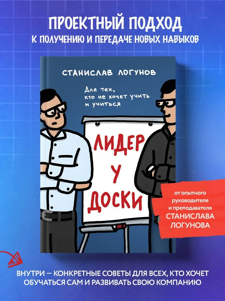 "Лидер у доски. Для тех, кто не хочет учить и учиться" от Станислава Логунова стоит особняком на фоне другой тематической литературы, предоставляя практические рекомендации и оказывая реальную помощь руководителям бизнеса и просто желающим развиваться. Автор с легкостью и самоиронией делится своими знаниями, полученными из собственного опыта. Он не был любителем учиться - и я тоже. Он не стремился учить кого-то - и я тоже. Но в итоге он полюбил и захотел - и убедил меня попробовать. Потому что он не позиционирует себя как крутого и мудрого эксперта, а откровенно рассказывает о своих неудачах и ошибках на пути к достижению цели.