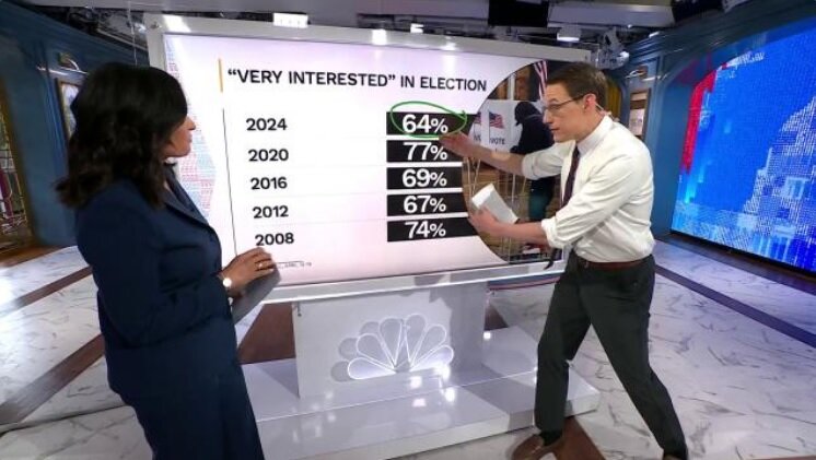 Никогда прежде опросы общественного мнения NBC не фиксировали более низкого интереса избирателей на столь позднем этапе избирательного цикла. Только 59% избирателей были «очень заинтересованы» в предстоящих выборах в марте 2012 года, но эта цифра выросла до 67%, когда гонка накалилась в следующем месяце.