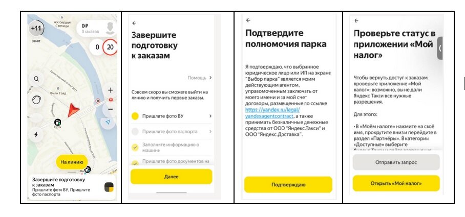В соответствии с изменениями в законодательстве, начиная с 22.04.2024 в такси водитель сможет работать только как парковый самозанятый (СМЗ). В связи с этим Яндекс переводит всех водителей в парковые СМЗ. Если водитель не оформил самозанятость, то с 22.04.2024 года он перестанет получать заказы в Яндекс.Про. Поэтому для продолжения работы необходимо оформить статус СМЗ в приложении “Мой Налог”. Регистрация в приложении «Мой налог» Водителю нужно установить на смартфон приложение «Мой налог» и пройти регистрацию — потребуется паспорт и 15 минут времени. После сообщить номер телефона менеджеру парка для регистрации парковым СМЗ. Подтверждение профиля в Яндекс Про После регистрации в парке, у водителя появится новый профиль — паркового самозанятого. Чтобы получить доступ к заказам, ему нужно зайти в новый профиль, подтвердить полномочия парка и пройти проверки в разделе «Диагностика»: заново пройти фотоконтроль паспорта и водительского удостоверения, и машины. *Рейтинг, активность и урове