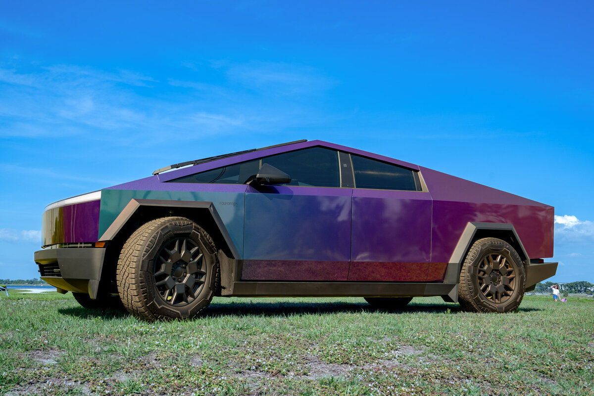 Отгружать товарные Кибертраки формально стали сразу после презентации в техасском Остине в конце прошлого года, хотя фактически массовым этот процесс стал всего пару месяцев назад. Первые владельцы пытаются на этом заработать. Например, на сервисе Turo пикапы сдаются по цене 500–600 долларов в день. Мне пришлось съездить в город Venice, что на западном побережье Флориды, чтобы протестировать Кибертрак. Там живут сплошь богатые пенсионеры. Я предполагал, что им не будет никакого дела до нашего электромобиля. Однако во время каждой остановки для небольшой фотосессии вокруг моментально собирался народ. Надо отметить, что особое восхищение вызывал цвет. Тестируемый автомобиль обтянут пленкой цвета хамелеон под названием «Spectrum», что только добавляло масла в огонь всеобщего интереса.