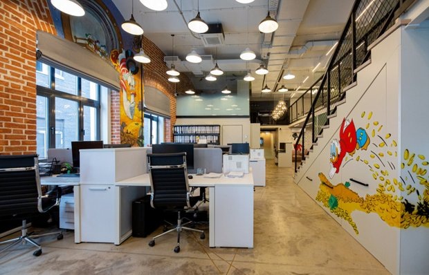 Рассказываем, как оформили офис в старинном здании Рябовской мануфактуры Сделать офис жизнерадостным и комфортным для работы — не самая простая задача. Нужно учесть не только нормы эргономики, инсоляцию, но и предусмотреть «фишки», которые будут радовать сотрудников в течение рабочего дня. Дизайнер Анна Бубнова добавила в интерьер офиса строительной компании рисунки в духе «Утиных историй» — получилось круто. Место: Москва Метраж: 318 кв. м Год реализации: 2023 Дизайн: Анна Бубнова Помещение площадью 318 кв. м находится в отреставрированном здании, БЦ «Товарищество Рябовской Мануфактуры». Архитектурная особенность офиса — это open space с большим количеством окон. Главной задачей было увеличить полезную площадь офиса. Спроектировали антресоль с рабочими кабинетами, архивами, кухней и санузлы на двух уровнях. Кабинет руководителя с комнатой отдыха обособили. «Тематика офиса была выбрана заказчиком, он предложил использовать изображения диснеевских героев из мультика «Утиные истории» — т