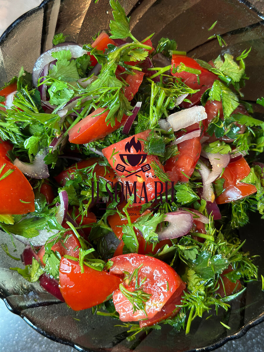 Идеальный салат для плова и шашлыков. Ачичук — узбекский салат из спелых томатов, лука и зелени! Всего 3 ингредиента, а вкус на миллион! Главный секрет вкуснейшего салат — спелые помидоры. Идеальный сорт — бычье сердце. Сам салат подходит практически для всех мясных блюд. Но изначально салат шел как дополнение к узбекскому плову. Рецепт вкуснейшего плова в казане на плите можете взять у нас на сайте. Правильно салат называется аччик-чучук, что в переводе с узбекского означает горько-сладкий. Лук и перец делают салат острым, а спелые помидоры — сладким. Еще один вариант названия этого салата — шакароб.