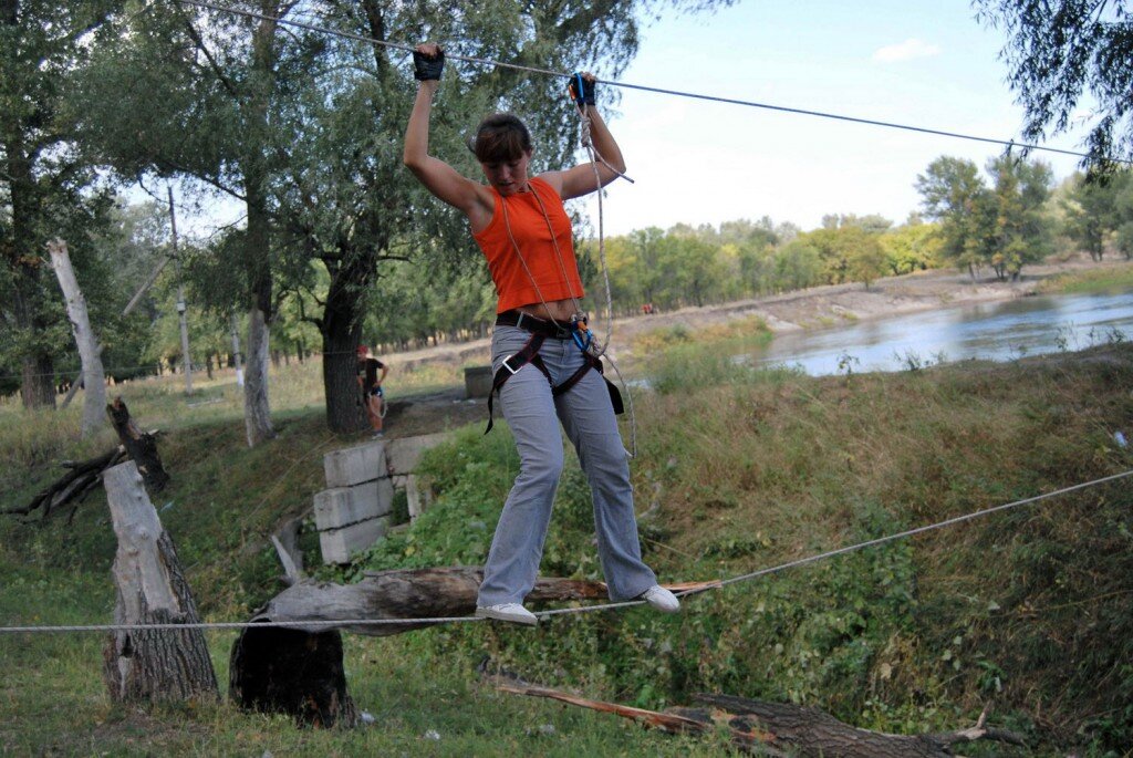 Мы попробовали пройти и, я вам хочу сказать, для первого раза это было очень не просто. На параллельной переправе верёвка под ногами тряслась, а ноги не хотели идти правильно.