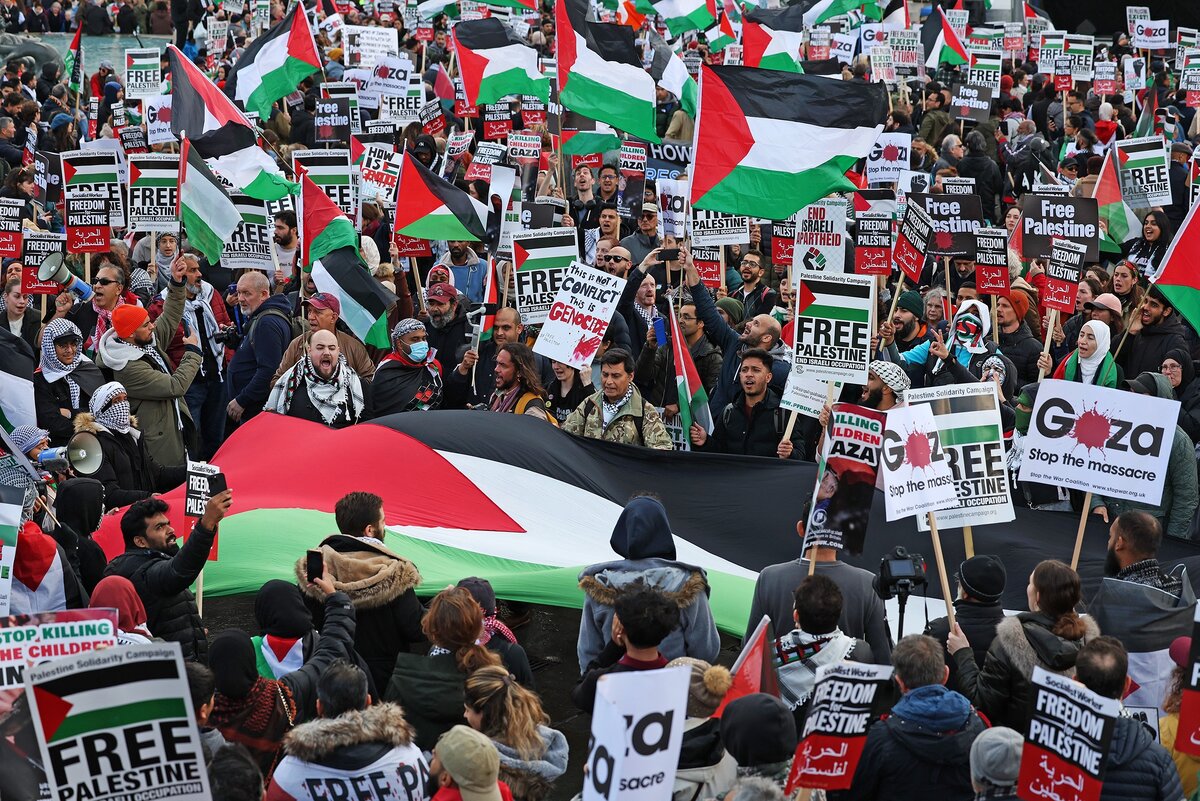 В общем дело было так...Шёл по улицам Лондона на выходные очередной про-палестинский марш протеста с требованиями прекращения огня и поставок оружия Израилю, осуществляющему в прямом эфире геноцид народа Палестины...