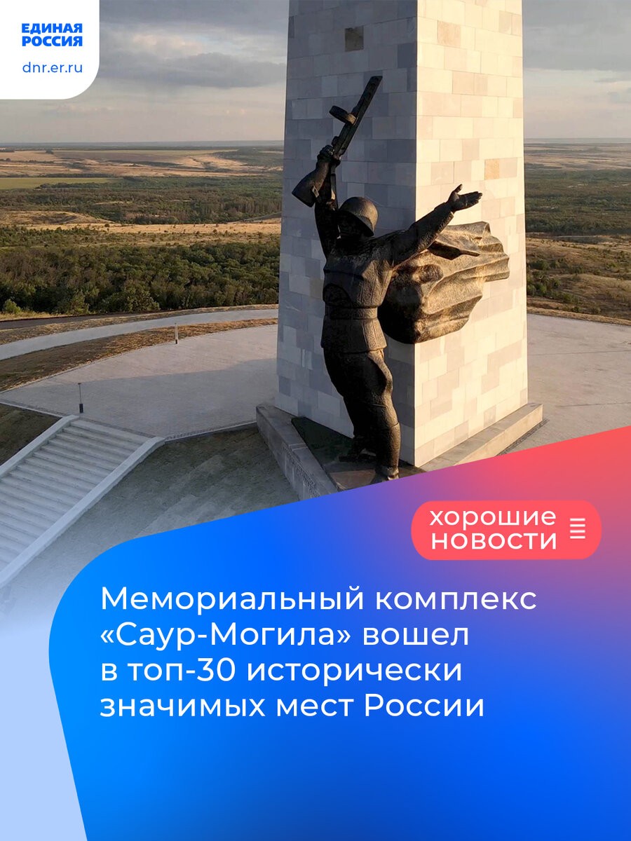 По результатам конкурса «От южных полей до Полярного края» Саур-Могила вошла в топ-30 исторически значимых мест в Российской Федерации. В конкурсе принимали участие все регионы Российской Федерации. Всего было отобрано 445 достопримечательностей. Войти в топ-30 – большое достижение. Наша гордость будет вдохновлять ещё больше жителей со всей России на новые путешествия по Донецкой Народной Республике! #ЕРДНР #ХорошиеНовости #ЕдинаяРоссия