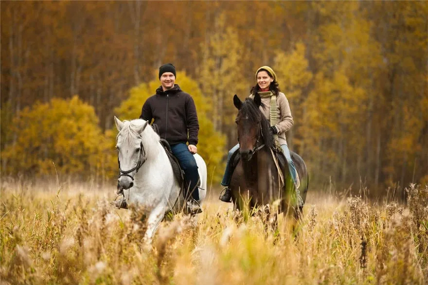 - На природе, съездить за город, покататься на лошадях.