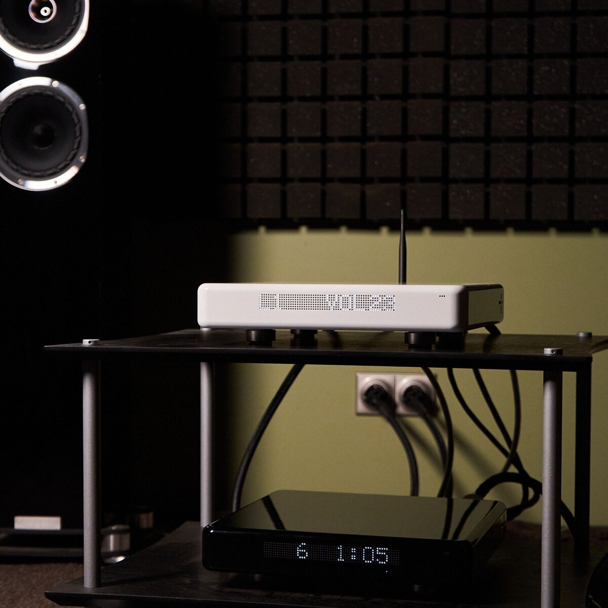 Эту систему мы однажды собрали в шоуруме, когда часть компонентов была упакована на выставку. Собрали, подключили и присели на диван на пару часов. Мы уже как-то рассказывали о том, как потрясающе звучала даже относительно старая техника Cyrus c F501SP. Новые тесты привели нас к еще одному отличному бренду, аппаратура которого имеет синергию с нашими любимыми шотландскими коаксиальными столбиками. В этом сетапе Fyne Audio F501SP звучали просто волшебно – ярко и натурально одновременно. Что в системе? Roksan Oxygene CD Минималистичный CD-транспорт в черном глянцевом оформлении. В проигрывателе применено редкое инженерное решение: программно-реализованное цифро-аналоговое преобразование на ПЛИС Xilinx Spartan (24 бита/192 кГц). Привод компакт-дисков использует щелевой загрузчик. Цифровые выходы — оптический Toslink и электрический RCA, аналоговые — RCA. Roksan Oxygene INT Мощность 75 Вт/150 Вт (8/4 Ом) с выходным каскадом класса D (Hypex) и линейным (не импульсным) блоком питания «двойн