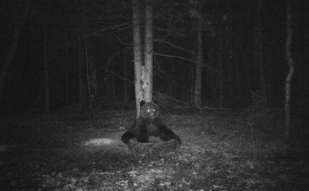 В Тульской области бурый медведь попал в фотоловушку