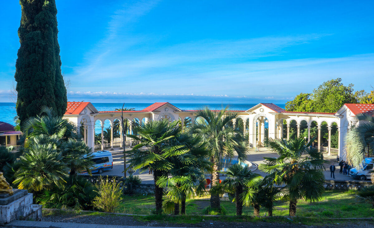 По соседству, в Приморском парке, расположены не менее известные локации страны — старинный ресторан «Гагрипш» и колоннада.