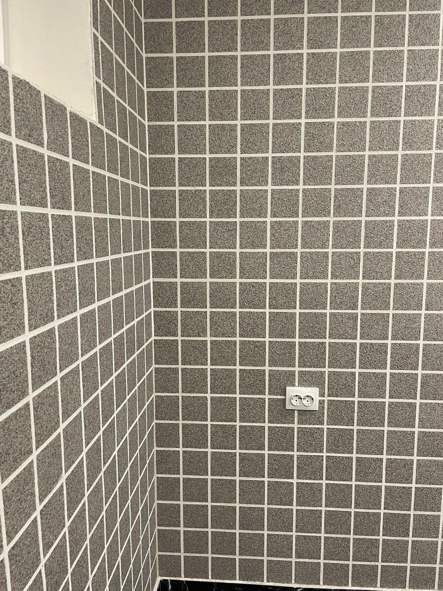 Это покрытие повторяет вид плитки квадратной формы. Органично встраивается в интерьер санузлов и кухонь.