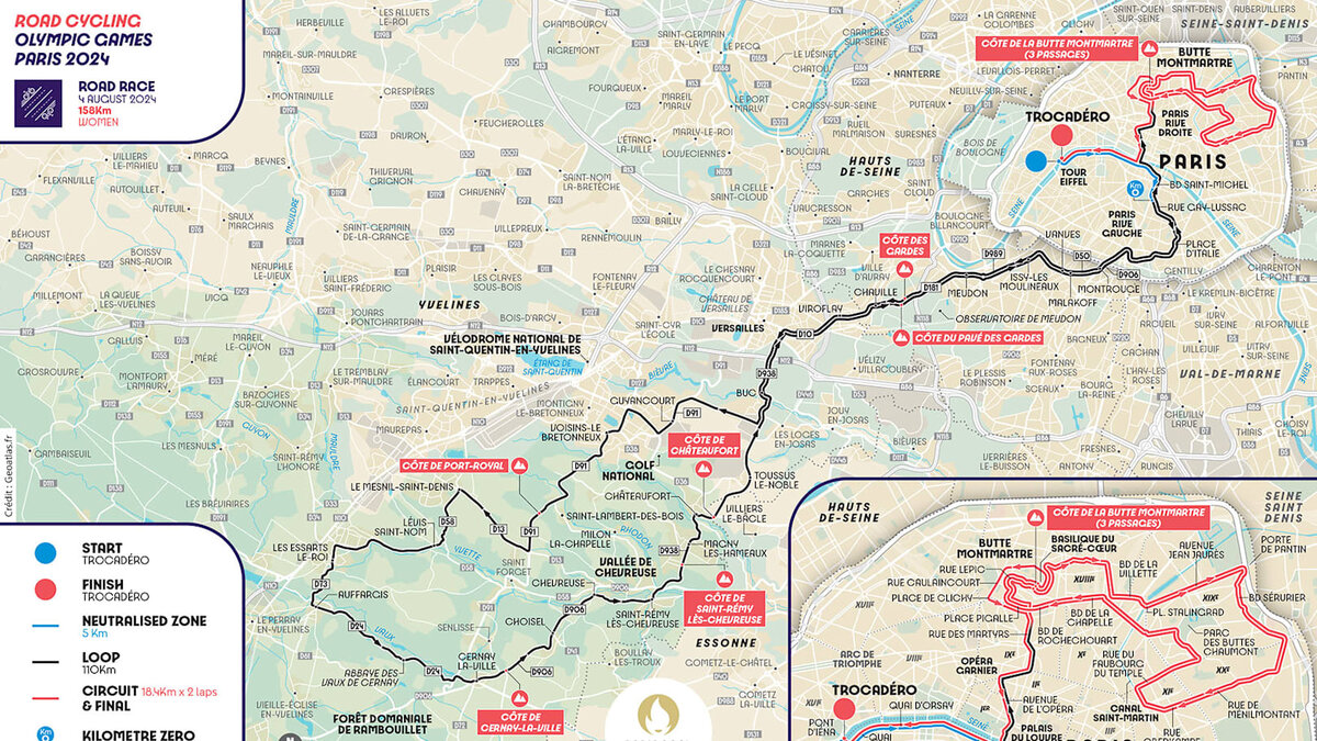 Дистанция групповой гонки у мужчин составит 273 км, у женщин - 158 км. Старт и финиш будет располагаться в парке Трокадеро, недалеко от Эйфелевой башни. Вряд ли спортсмены успеют оценить, но они проедут по многим значимым местам: Версальский дворец, Лувр, Монмарт.